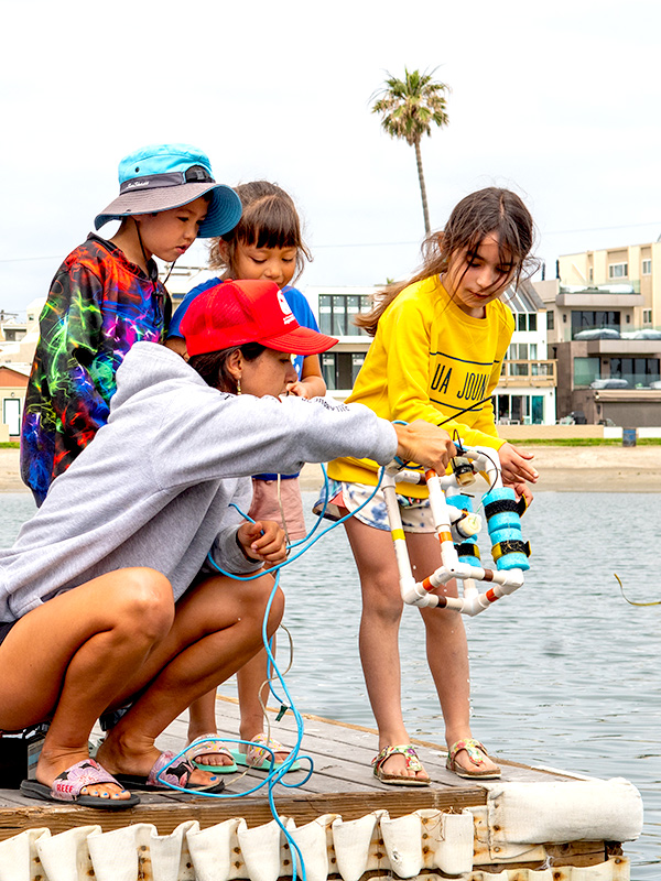 Marine Science is a fun and exciting activity that fosters stewardship and long-term connection to the ocean through hands-on activities, games, and through strong role models that will inspire the next generation of scientists, policy makers and conservationists. There will be plenty of hands-on experiences activities including collecting and examining plankton through a microscope, learning about tides and currents, and even designing and building a remote controlled underwater ROV.