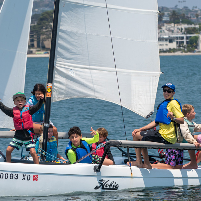 Campers will participate in Basic Sailing instruction in the morning and then get to try out a different watersport each afternoon. Basic sailors will learn to sail in a single-person, simple Sabot. After learning the basics on land, most of the week will be spent sailing on Mission Bay. Campers that are comfortable and confident sailing the Sabot can move on to Adventure Sailing for future camp weeks.